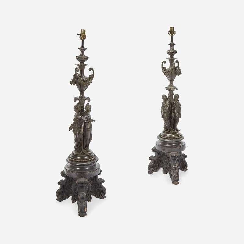 A Pair of Baroque Revival Bronze Figural Candelabra Mounted as Lamps 19th Century