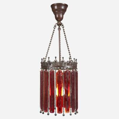 With Favrile glass prisms by Tiffany Studios, patinated bronze.