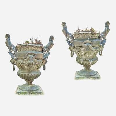 A Pair of Egyptian Revival Cast Metal Garden Urns* 19th/20th century