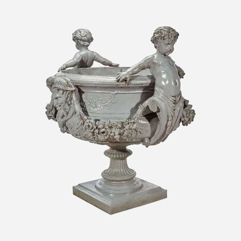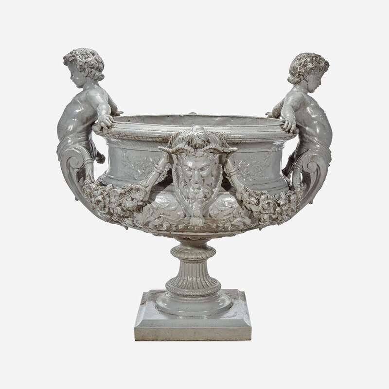 A Large Figural Gray-Painted Cast Zinc Garden Urn J. W. Fiske, New York, late 19th century