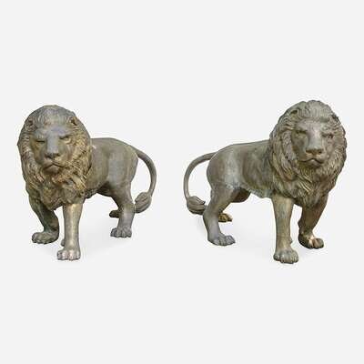 A Large Pair of Large Cast Metal Lions* 20th century