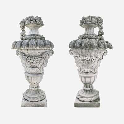 A Large Pair of Composition Stone Garden Urns*