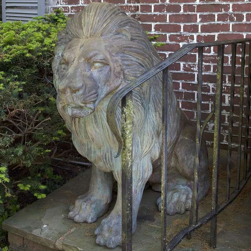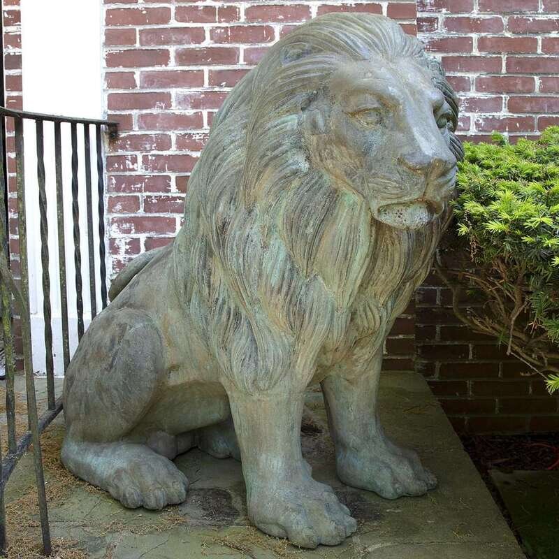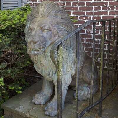 A Large Pair of Verdigris Cast Metal Seated Lions*