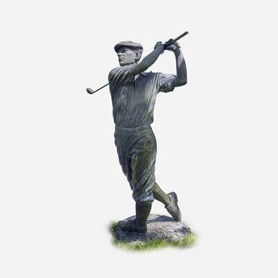 Modeled to show the golfer having just completed his swing, raised on a circular base.