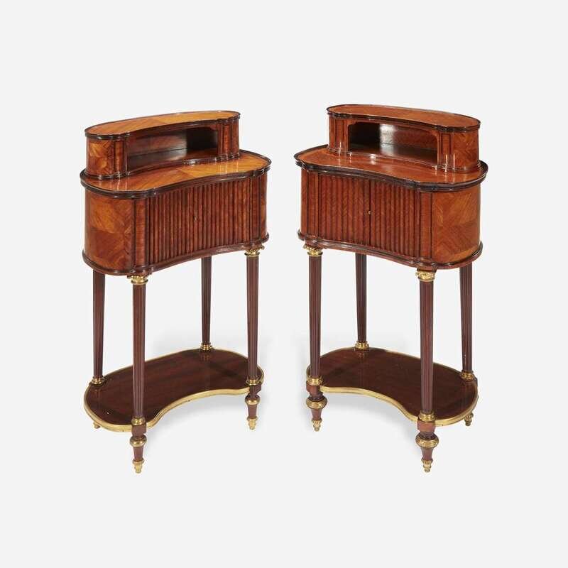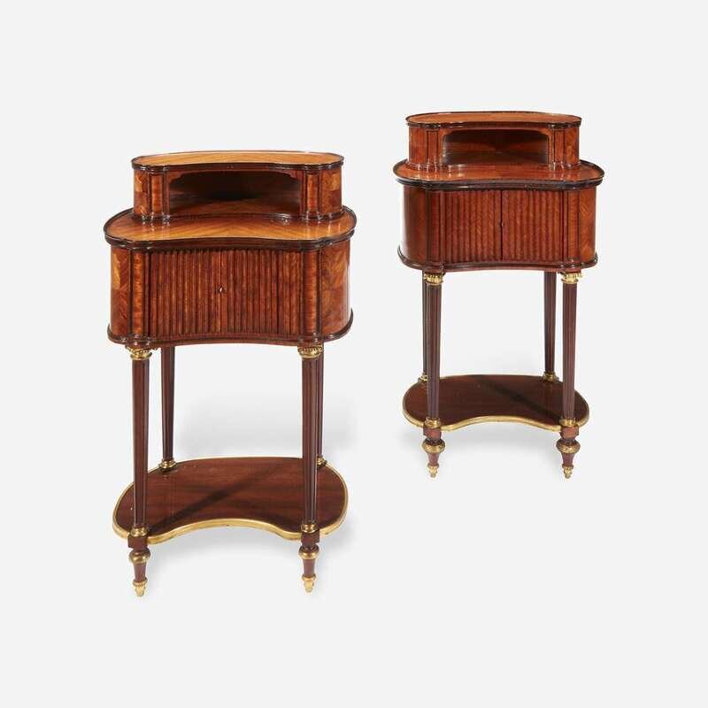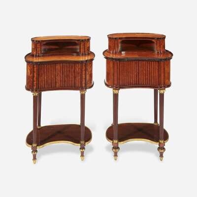 A Pair of Louis XVI Style Gilt-Bronze Mounted Fruitwood and Mahogany Side Tables Late 19th/early 20th century