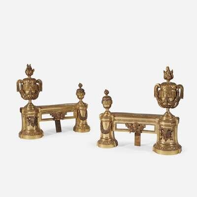 A Pair of Louis XVI Style Gilt-Bronze Chenets 19th century