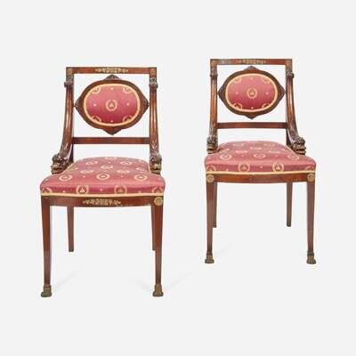 A Pair of Louis Phillippe Ormolu-Mounted Mahogany Bergeres Second quarter 19th century