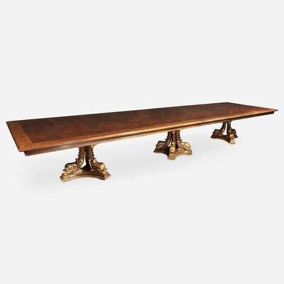 A Large Walnut Three-Pedestal Dining Table 20th century