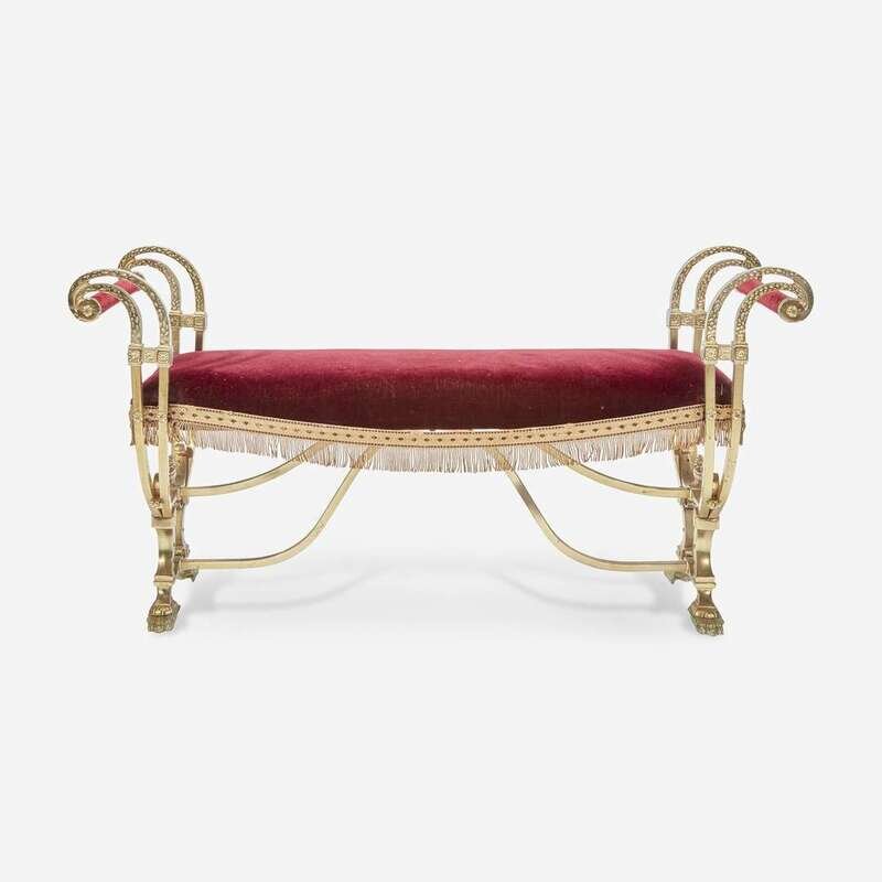 An Empire Style Velvet Upholstered Brass Bench Early 20th century