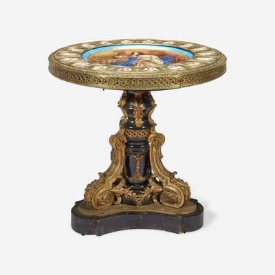 A Sèvres Style Porcelain Mounted Ebonized and Gilt-Bronze Gueridon Table Circa 1880
