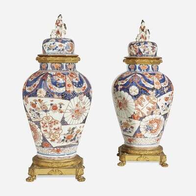 A Pair of Gilt-Bronze Mounted Imari Covered Jars 18th century with later mounts