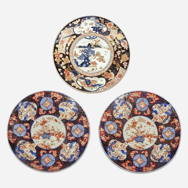 Three Massive Imari chargers The pair Meiji period, the third circa 1700-1725