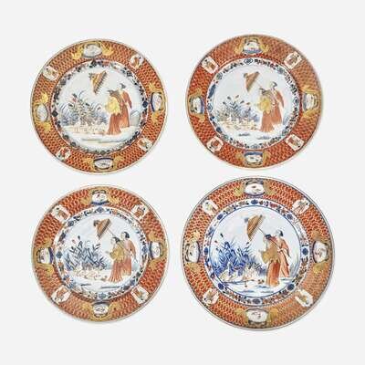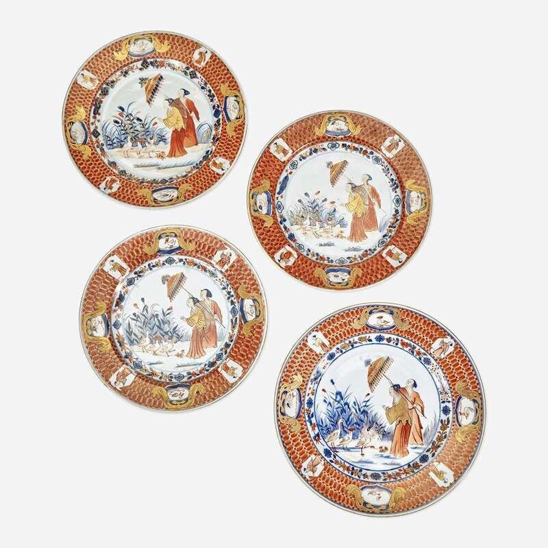 Four Chinese Imari Plates in the ‘Dames au Parasol’ Pattern 18th century