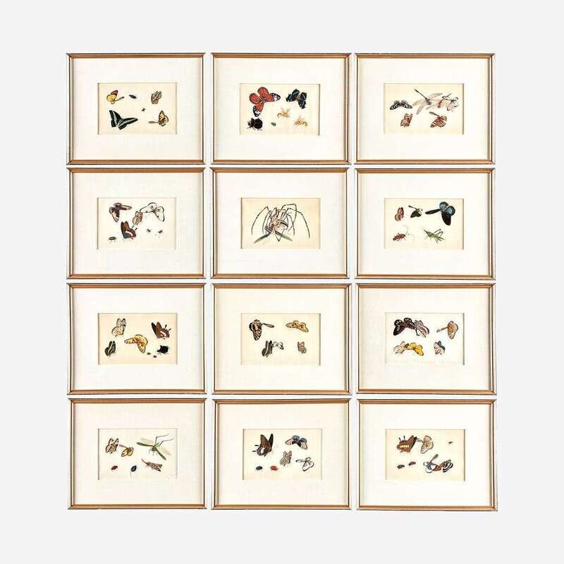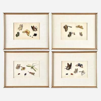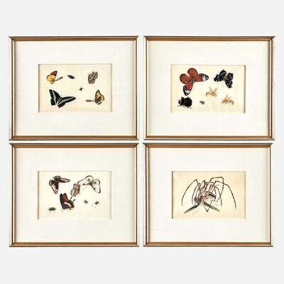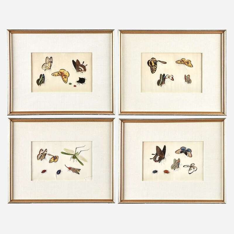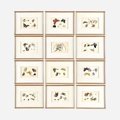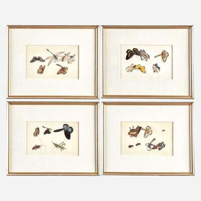 Each depicting butterflies, beetles, and other insects on pith paper, sold together with the original portfolio, with 'SUNQUA' label to interior. (13).