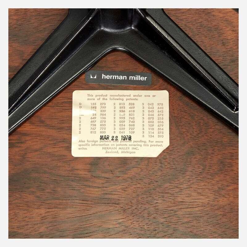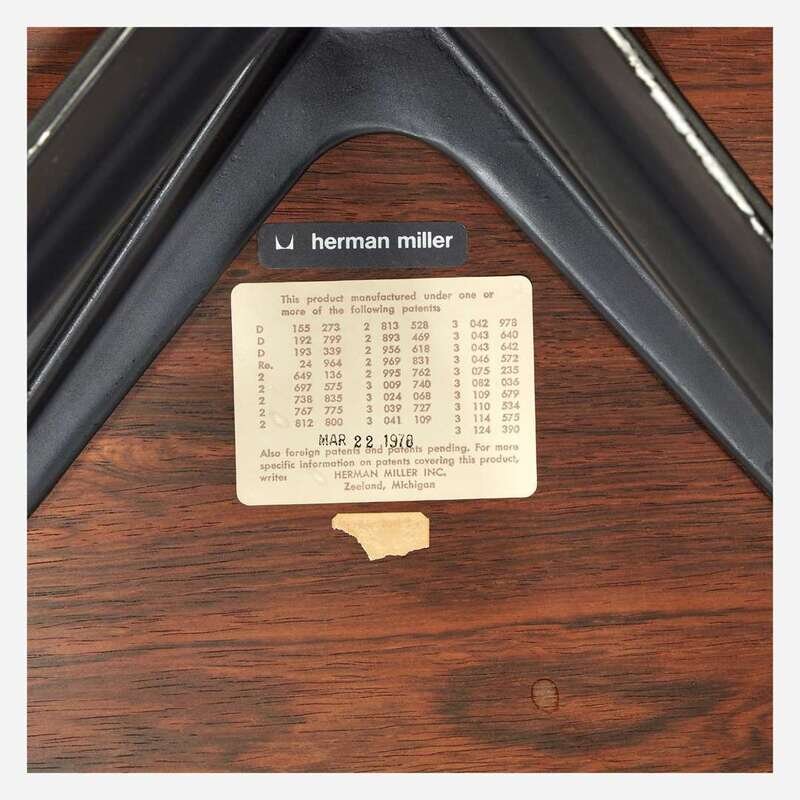 Both chair and ottoman with applied Herman Miller Inc. paper patent labels, dated "Mar 22 1978," and applied tags.