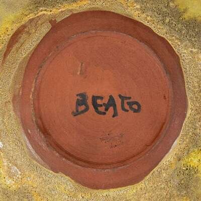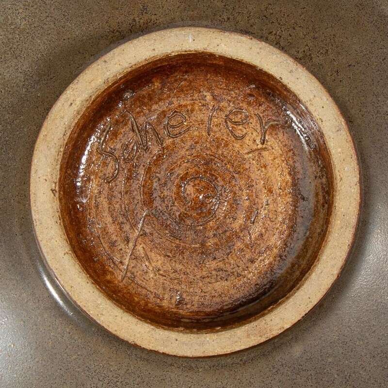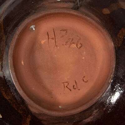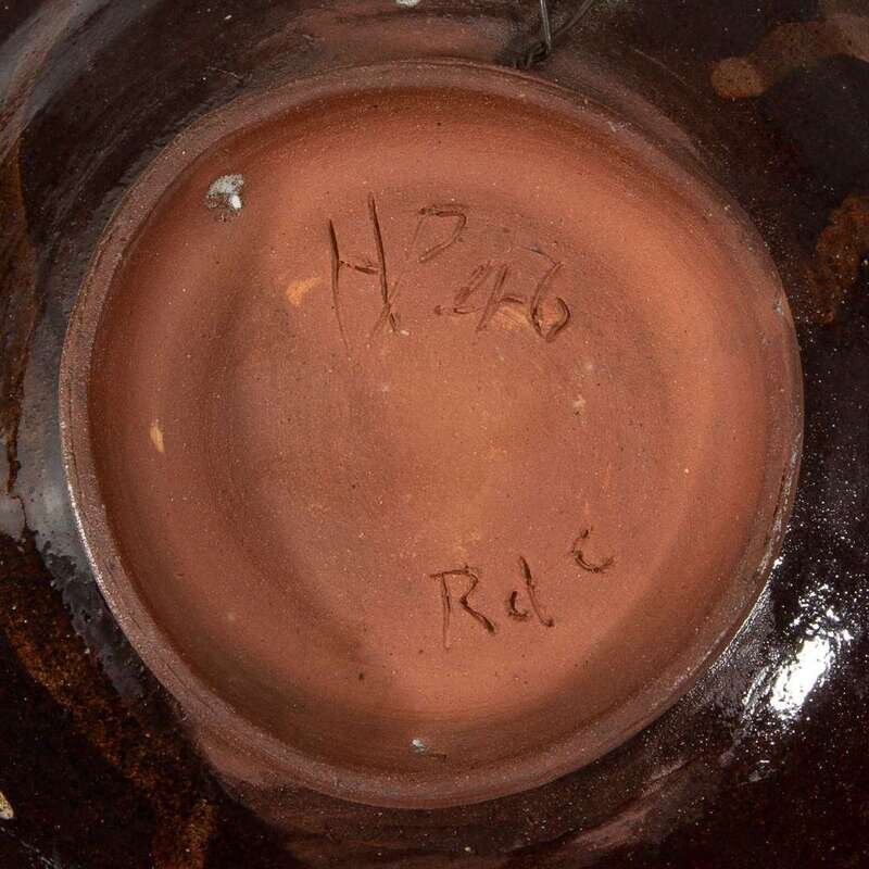 Comprising a footed portrait bowl by Henry Varnum Poor (American, 1887-1970), signed and dated "HP 46," and inscribed to underside "HP 46/ Rd c"; a plate with strawberry plant by Henry Varnum Poor (American, 1887-1970), signed and dated "HP 66," and inscribed to underside "HP 66"; a footed bowl by Edwin Scheier (American, 1910-2008) and Mary Scheier (American, 1908-2007), inscribed signature to underside "Scheier," circa 1950s; and a bowl by Beatrice "Beato" Wood (American, 1893-1998), signed to underside "Beato," circa 1980s.