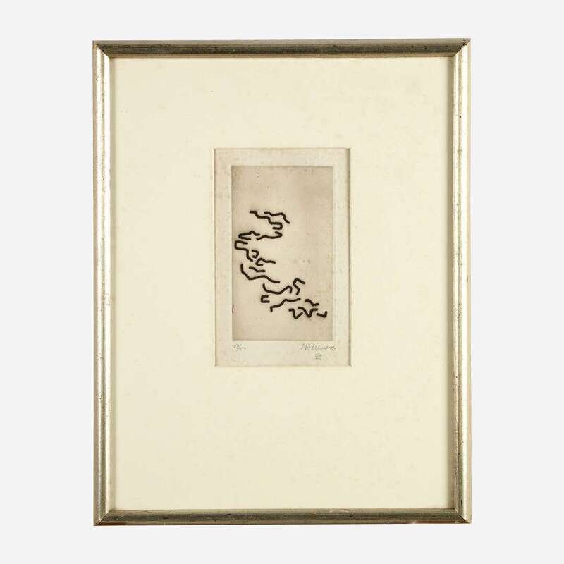 1963, pencil signed and numbered 27/50, with wide margins, Maeght Éditeur, Paris, publisher. Drypoint on Rives BFK paper.
