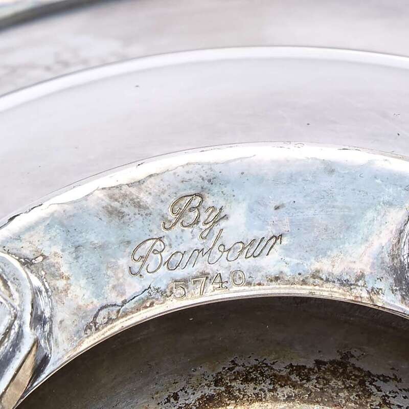 The bowl marked to underside: "By Barbour 5740", the candelabra marked to underside: "By Barbour 6895."
