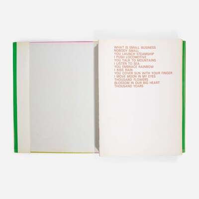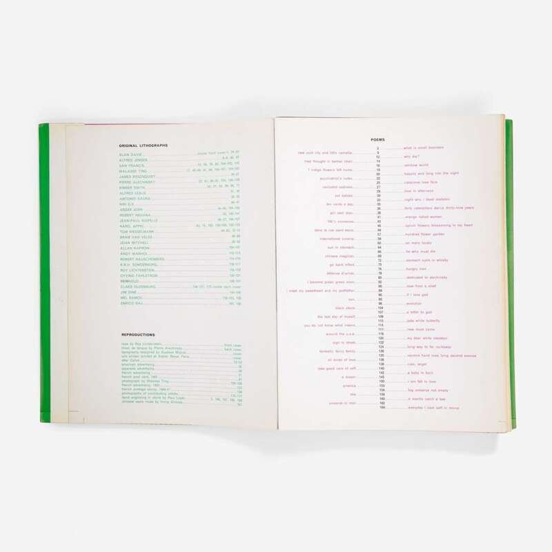 1964, number 237 from the unsigned edition of 2000 (there was also a deluxe edition of 100 signed and numbered by the artists), the full sheets, E.W. Kornfeld, Bern, Switzerland, publisher. The complete set of 62 unsigned and unnumbered color lithographs with title, text by Walasse Ting, table of contents and justification on wove paper, all loose (as issued) in the original screenprinted titled linen-covered cardboard cover with printed dust jacket.