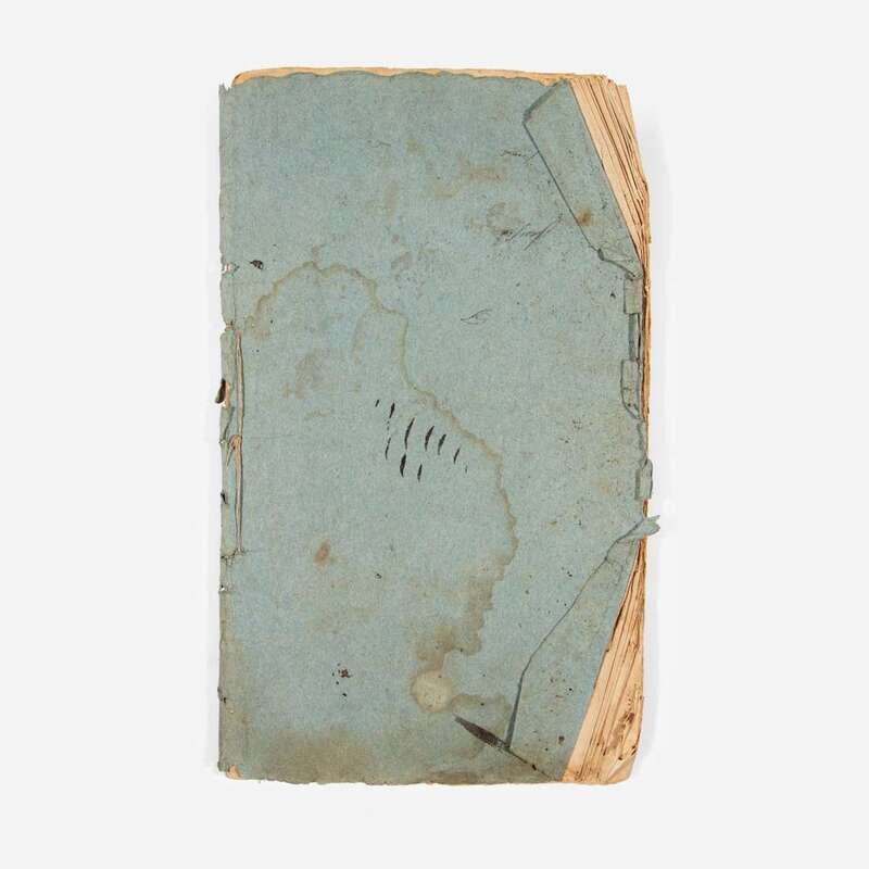 New-York: Printed by Francis Childs and John Swaine, Re-printed at New-Haven, by Thomas and Samuel Green, no date (ca. 1789). First New Haven edition. Folio. 81, (1) pp. Original limp blue wrappers, stab-sewn with original thread, spine worn, creasing along fore-edge, several contemporary or near-contemporary signatures on front wrapper, including that of Renee Butler, Lucretia Cook, and Allan Von must (?), as well as the name of "Harrington Parish" (a Presbyterian meeting house in Maine), dampstaining at top of front and rear wrapper; all edges untrimmed; creasing along fore-edge of text leaves; scattered spotting and soiling to text. Completely unsophisticated. Evans 22191; Sabin 15493; ESTC W14329 (locating five copies); OCLC locates two copies.