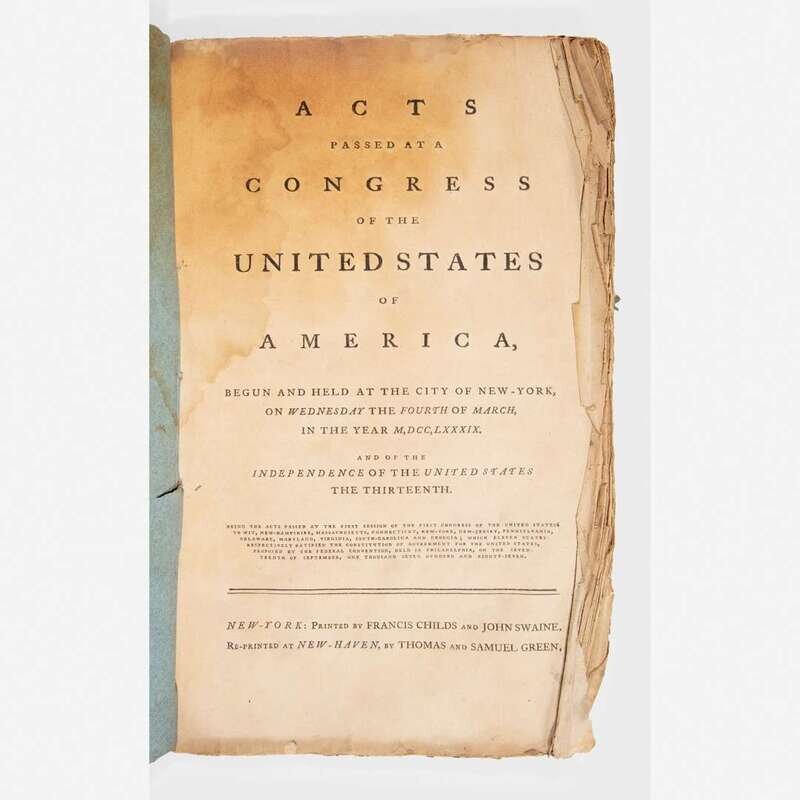 Rare New Haven printing of the first acts of the first congress of the United States