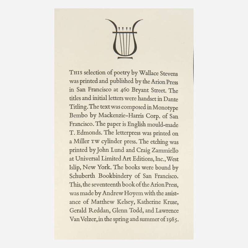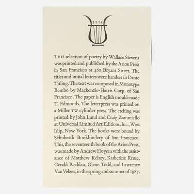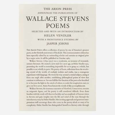 [Private Press] [Arion Press, The] Stevens, Wallace, and Jasper Johns Poems