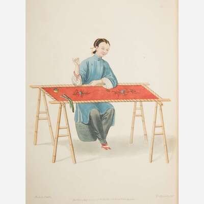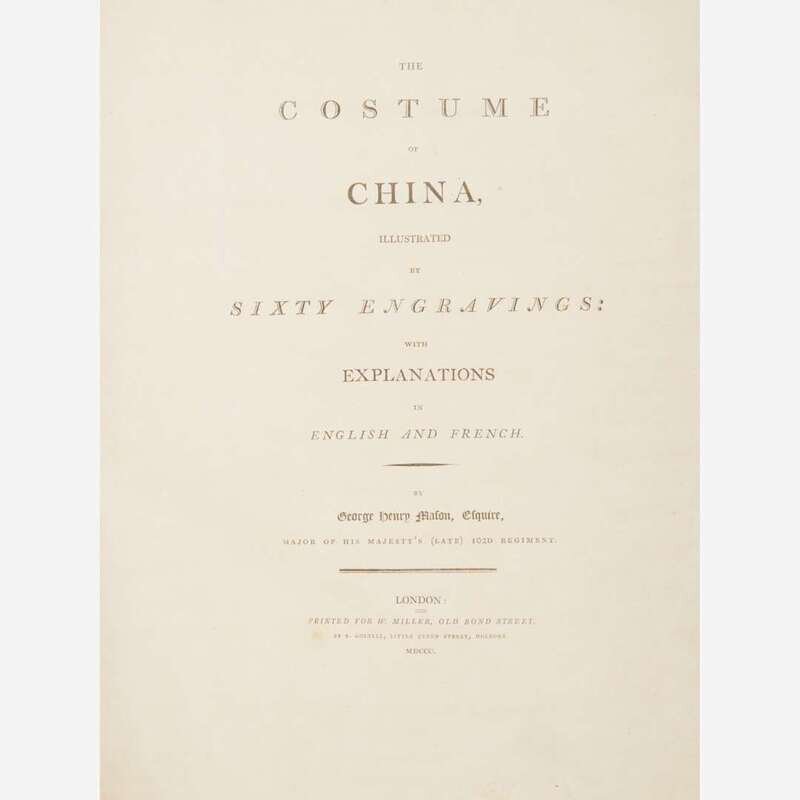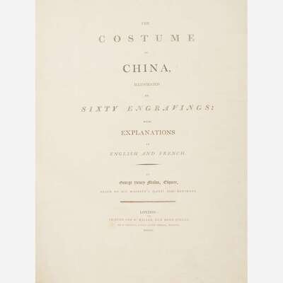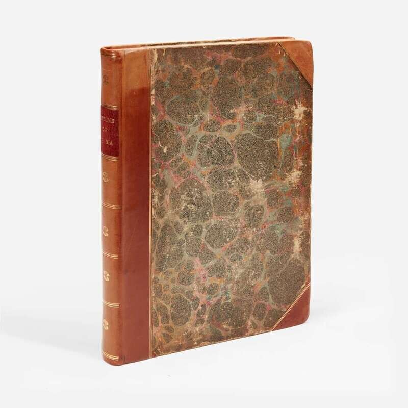 London: Printed for W. Miller by S. Gosnell, 1800. First edition. 4to. Printed in English and in French, with two title-pages, two Prefaces, and two Tables of Contents for each language. Illustrated with 60 hand-colored stipple engravings; each with accompanying English and French text leaves. Text leaves variously watermarked, dated 1794 and 1797; plate leaves variously watermarked, dated 1796 and 1797. Three-quarter brown calf, over marbled paper-covered boards, stamped in gilt, red morocco spine label, rebacked, boards rubbed; all edges trimmed; scattered light to moderate foxing to text and plates; offsetting from plates onto text; top edges variously darkened; scattered small expertly repaired open tears; scattered soiling in margins; loss along bottom edge of plate II; 6 in. short closed tear at bottom of plate XI; chipping at bottom edge of plate XV; very small open tear at bottom left of plate LIV. Abbey, Travel 533