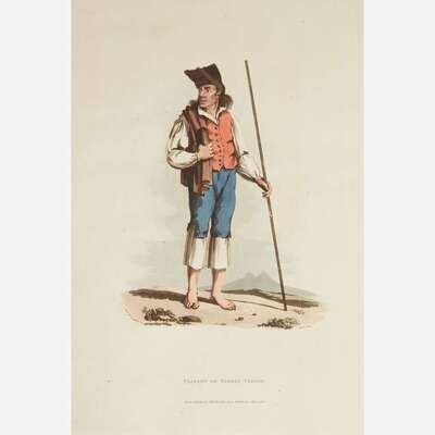 (London): Printed by William Savage for John Booth, 1810. First edition. 8 pp. Illustrated with 13 hand-colored aquatint plates, by J. Clark after Bradford; with tissue guards (foxing and offsetting); scattered minor foxing and smudging to plates and text.