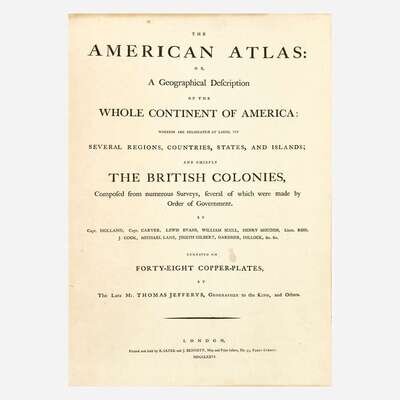 A fine example of the most important 18th-century atlas of America, including some of the most groundbreaking maps of North America and the English colonies, such as Joshua Fry and Peter Jefferson's A Map of the Most Inhabited part of Virginia, the most influential map of the Chesapeake region up until the 19th-century, Braddock Mead's A Map of the Most Inhabited Parts of New England, the largest and most detailed map of the region at that time, Lieutenant John Ross's Course of the River Mississipi, the first large scale map of the Mississippi River and the first based wholly on English sources, and William Scull's A Map of Pennsylvania, the first map of the province to chart its western frontier. This atlas represents the most comprehensive and detailed collection of maps of North America in the American Revolutionary War period, "as a major cartographic reference work it was, very likely, consulted by American, English, and French civilian administrators and military officers during the Revolution" (William Ristow).