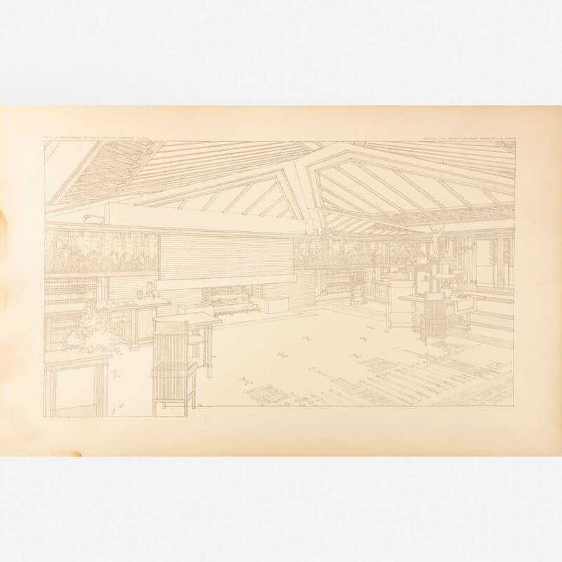Rare in any form. Only approximately 650 sets of the portfolio were ever produced, with 500 being put aside for distribution in the United States. Unfortunately, the majority of these sets were destroyed during the tragic fire and murders at Wright's studio, Taliesin, on August 15, 1914. It was partly due to this fire, and the loss of the sets, that Wright's influence was initially felt in Europe where these portfolios first circulated. According to Wright, only 30 sets were saved from the fire, and most are considered condition-compromised, which might account for the condition issues noted above.
