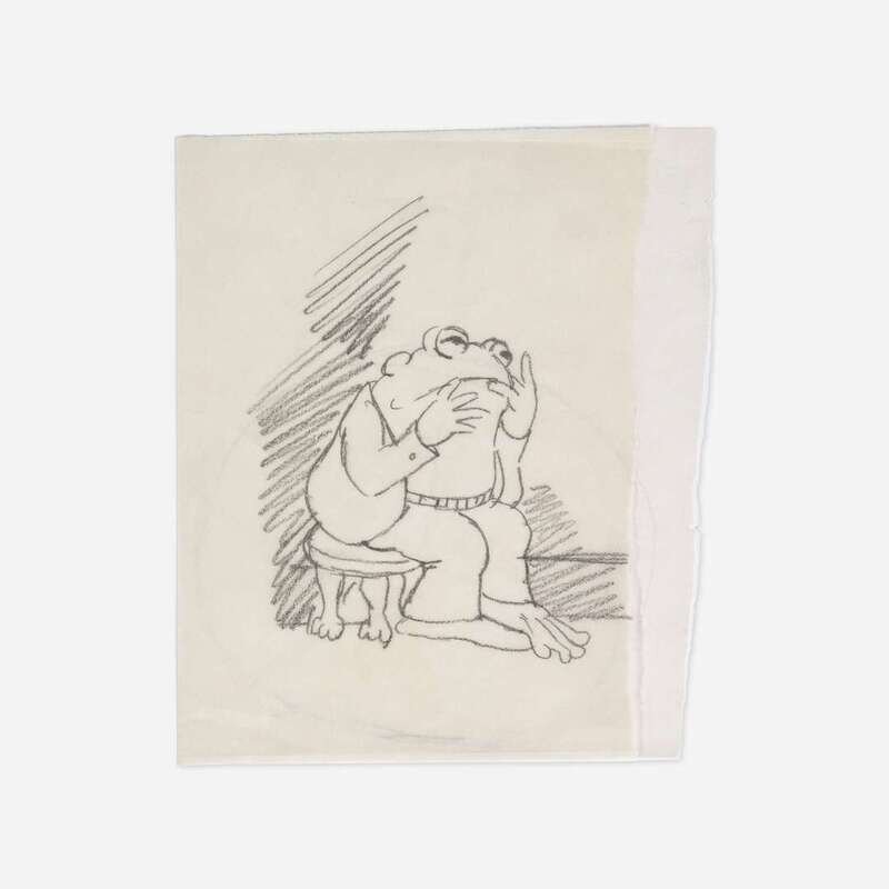 Circa 1970. Original graphite sketch on translucent paper. Featured on p. 18 in Lobel's classic, Frog and Toad are Friends (New York: Harper & Row, 1970). Approximately 6 x 5 in. (152 x 127 mm).