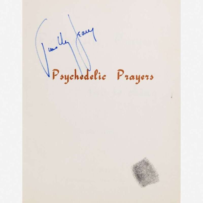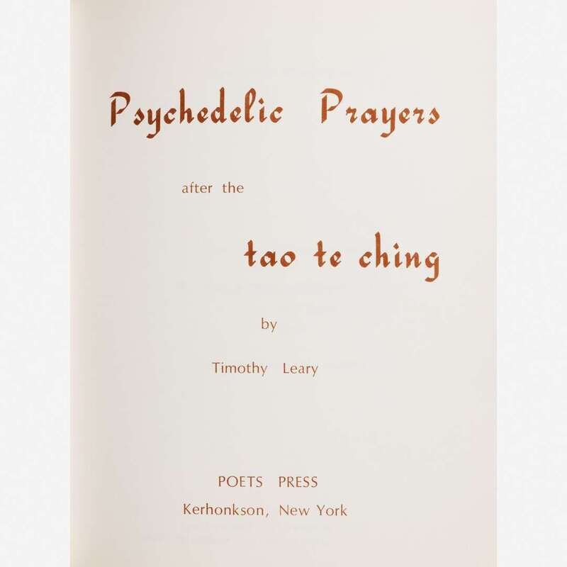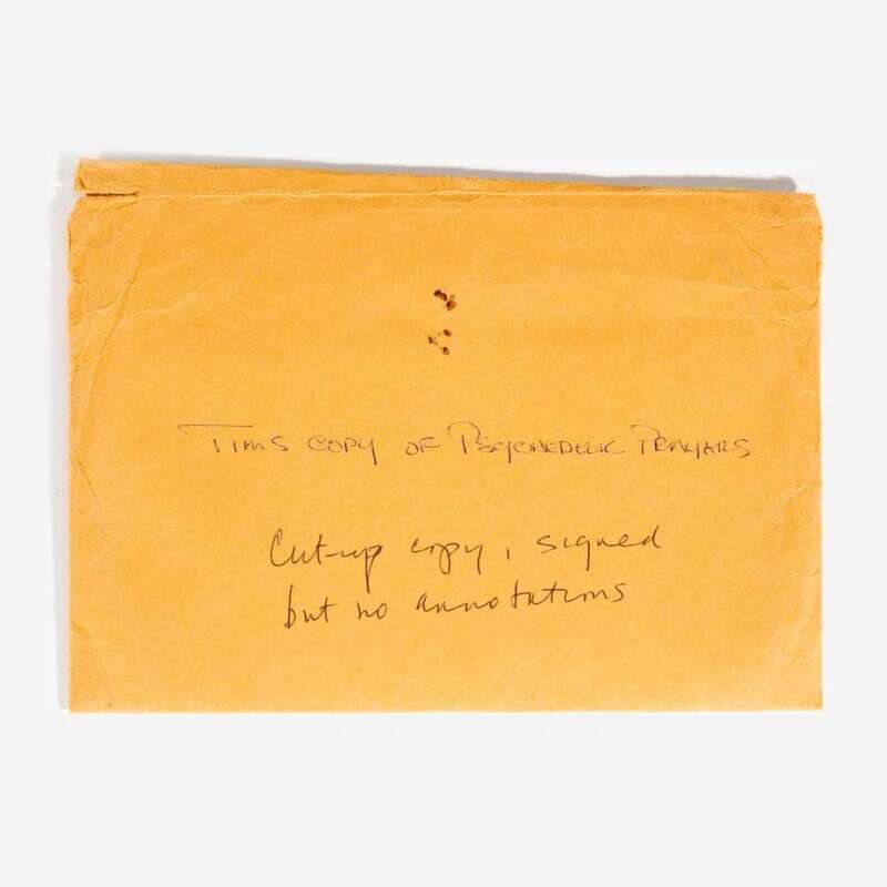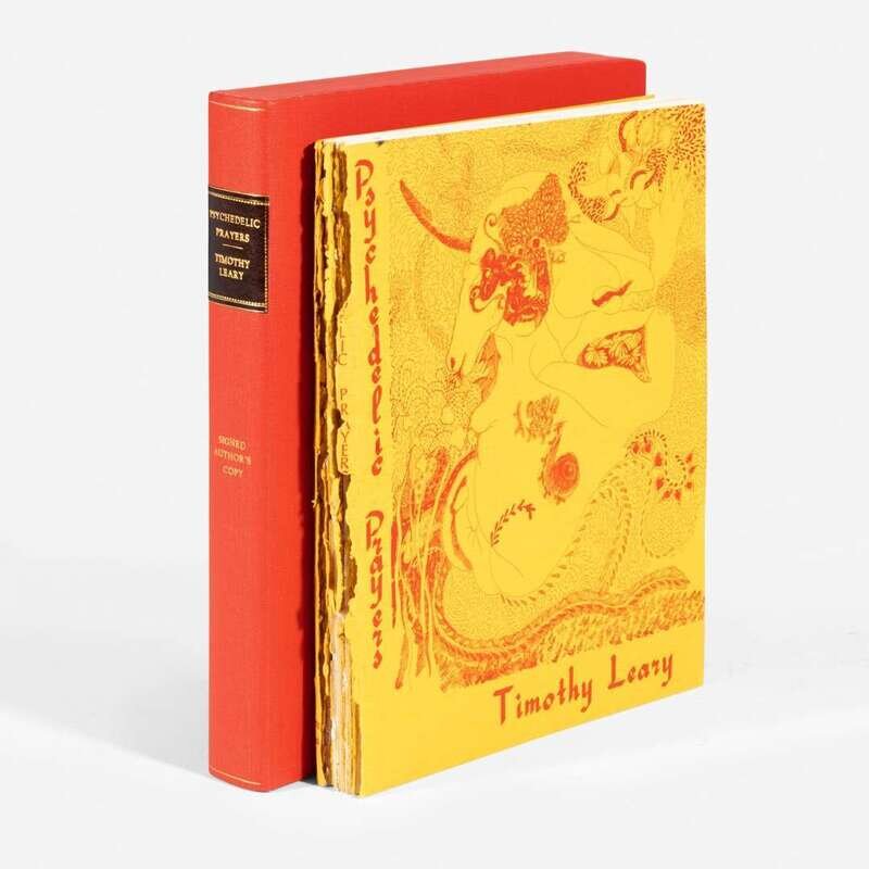 Kerhonkson, New York: Poets Press, (1966). First edition. 8vo. Timothy Leary's copy, signed by him on half-title. Comprising three copies of the same, cut up by Leary and incorporated into one, with some with halves removed, and many loose from binding but present. Original yellow printed wrappers, spine perished, wrappers separated, some content loose; with an original envelope; in red cloth slip case and chemise.