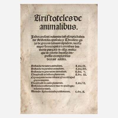 Aristotelis de historia animalium libri. ix. Theodoro Gaza interprete.