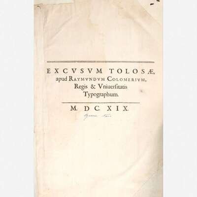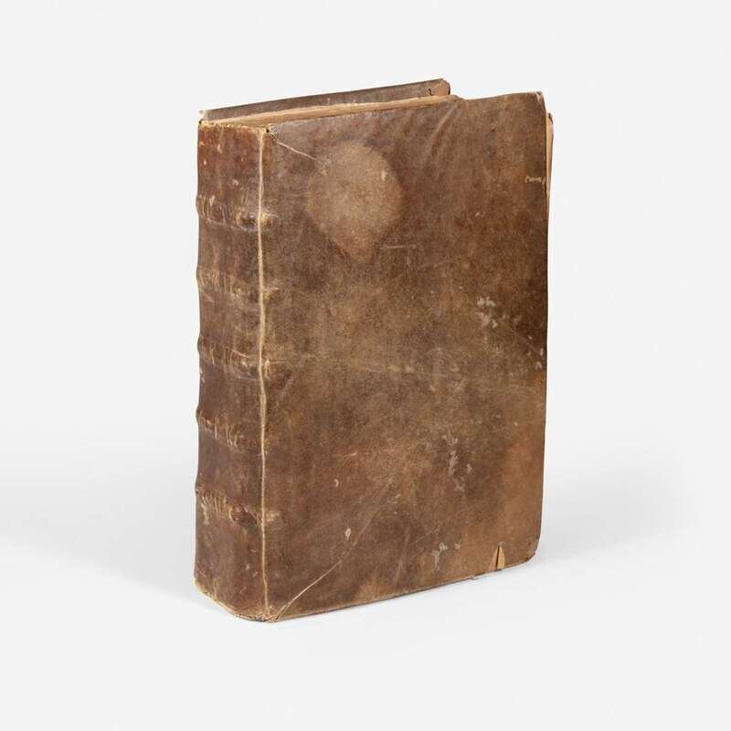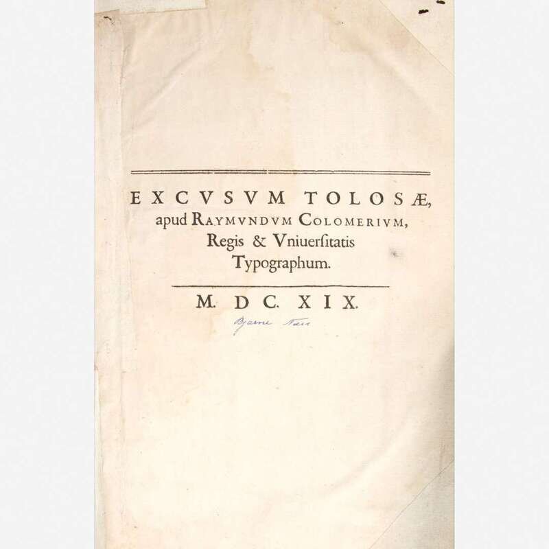 Tolosae: Apud Dominicum & Petrum Bosc., 1619. First Scaligero edition. Folio. (xxxii), 1,248, (20) (index), (4) pp. Illustrated with an engraved vignette title-page, small in-text woodcut illustrations, and numerous woodcut initials throughout. Contemporary bevelled wooden boards, with brown vellum and endpapers sometime replaced, scattered edge-wear; front and rear endpapers worn and repaired; title-page repaired and laid down, old ownership signature at bottom of same; gutter worn at front; scattered light to moderate dampstaining to text; moderate dampstaining in gutter of pp. 773-785, and 991-1015; some repairs along edges in index at rear; colophon repaired along gutter; scattered ownership signatures throughout, primarily in margins.