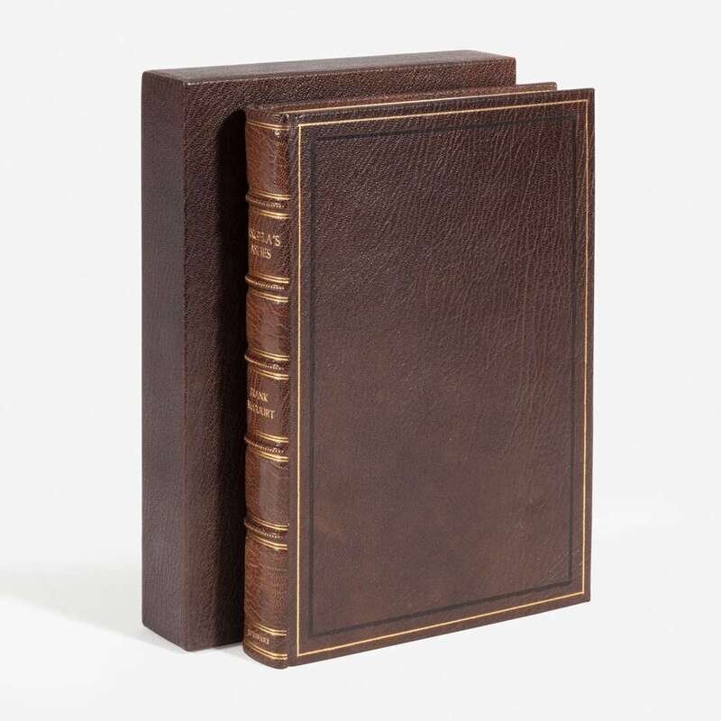 (New York): Scribner, (ca. 1996). Reprint. 8vo. 364 pp. Presentation binding for author Frank McCourt of full brown niger, stamped in blind and in gilt, small blemish on rear board; all edges gilt; marbled endpapers; in matching full brown niger slip case; by Vogel Bindery.