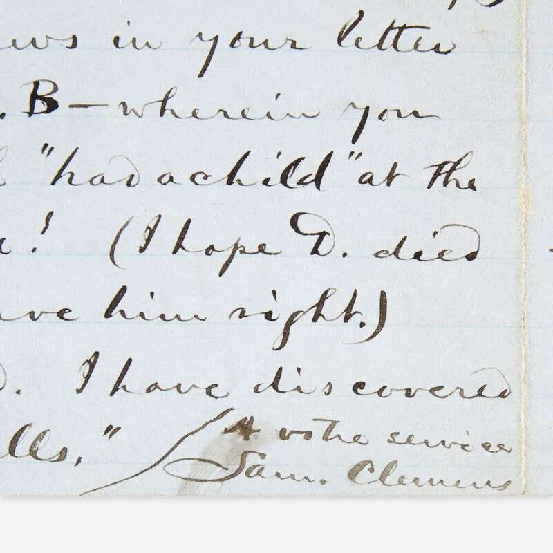 Only 15 earlier letters are known to physically exist, as cited by the Mark Twain Project (some others exist but only as copies as the original letters have not survived). All 15 are to Clemens family members and this letter to George W. Beaman is the earliest known letter to survive written to someone outside of Clemens’s family.