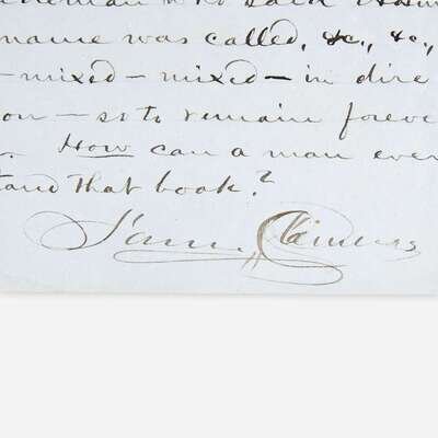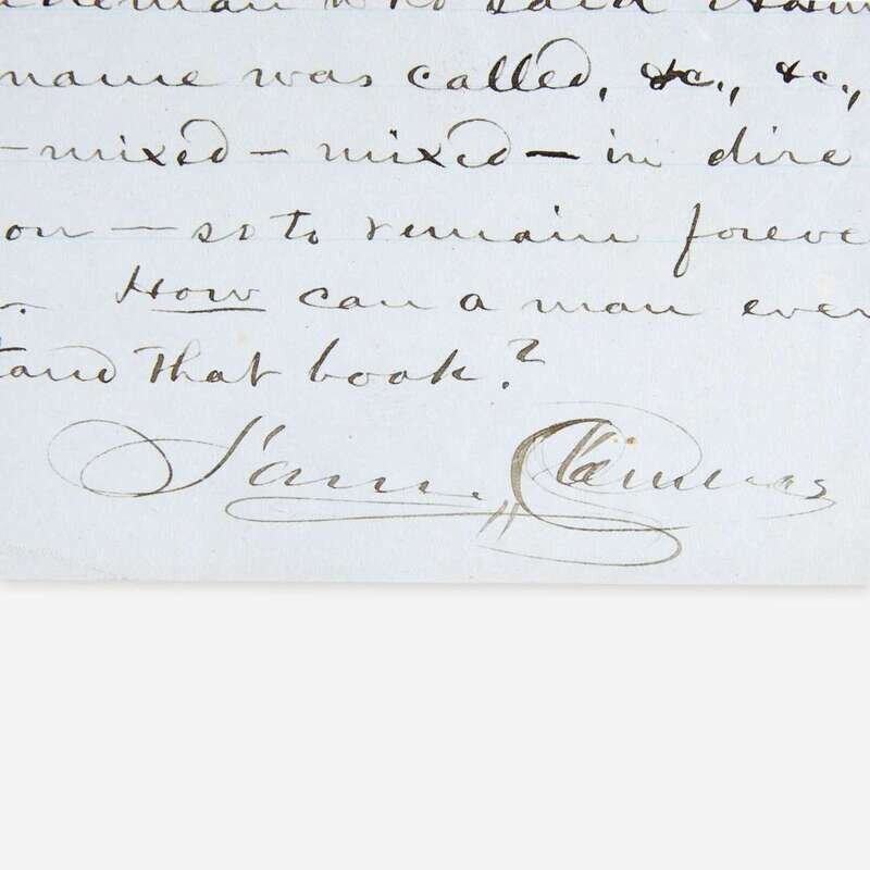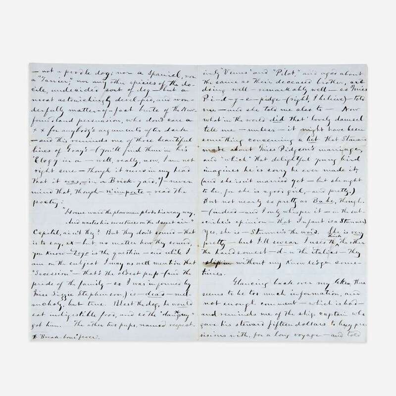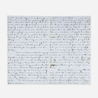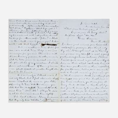 According to auction records, this is the earliest fully datable letter to ever appear at auction and one of only three pieces in manuscript to ever to appear at auction. The two earlier records are for an undated letter, ca. 1857-61, offered in 1971 at Sotheby’s and an 1856 manuscript poem written for his sister-in-law, Mollie, that was offered in 2005, also at Sotheby’s.