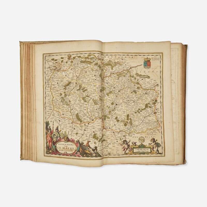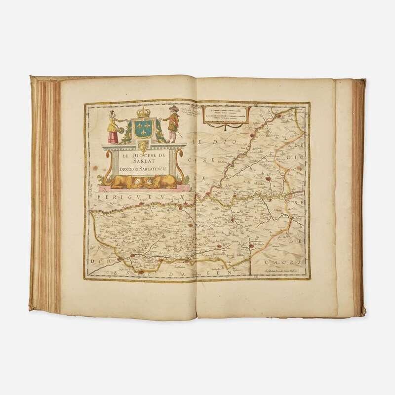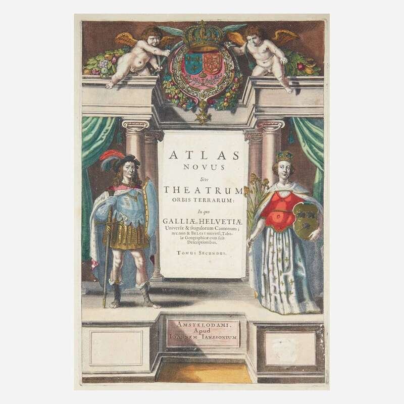 Second volume of Dutch cartographer Johannes Janssonius's (1588-1664) Atlas Novus, featuring 102 hand-colored views of France, Switzerland, and Northern Europe.
