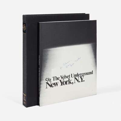 (New York: JMc & GHB Editions, 2007). First edition, one of 1,000 copies printed. 4to. (94) pp. Inscribed to the publisher by Velvet Underground drummer, Moe Tucker, on front wrapper. Profusely illustrated with press photos, posters, and other printed ephemera related to the history of the band. Original stiff pictorial wrappers; in black cloth fall-down-back box. In fine condition.