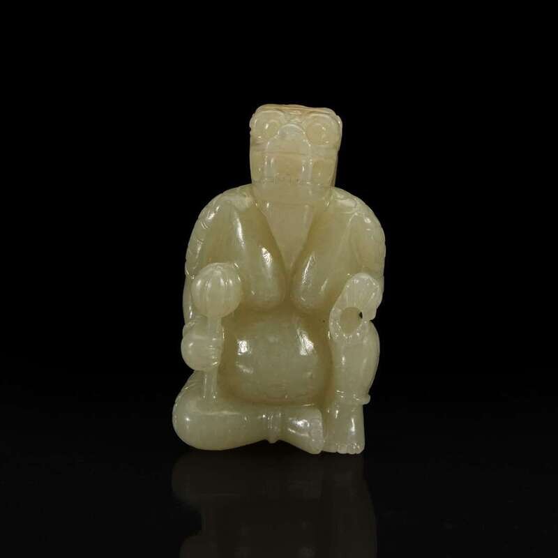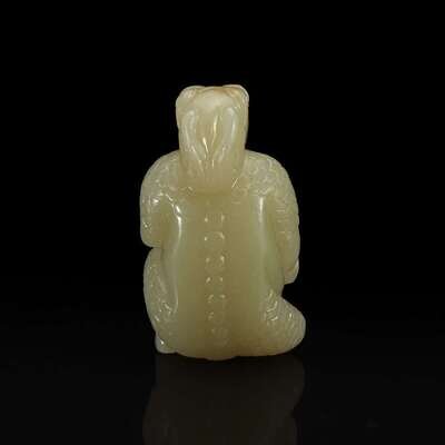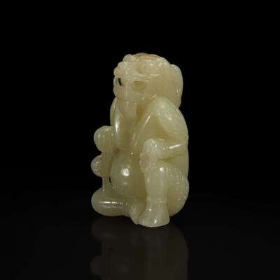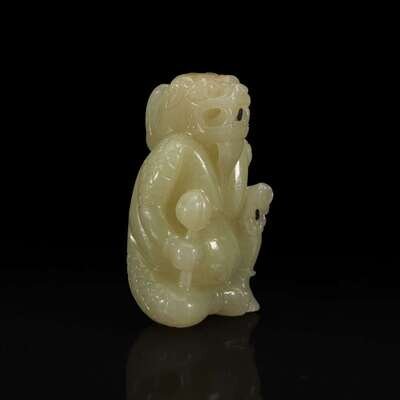 A Chinese Yellowish-pale celadon Jade Mythical Creature 黄玉雕瑞兽