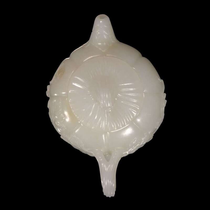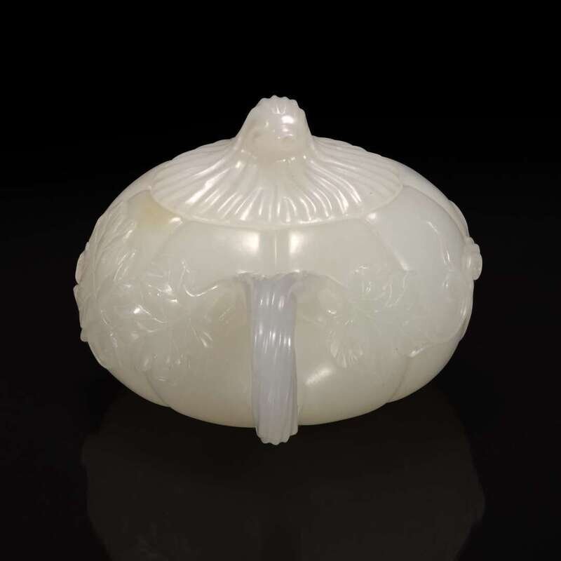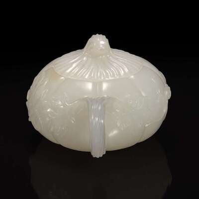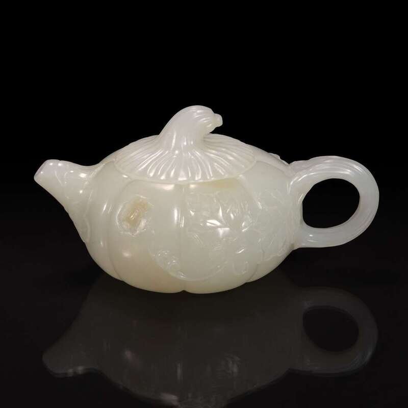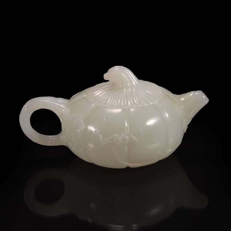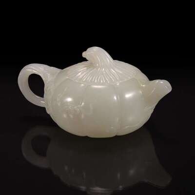 A small Chinese white jade melon-form teapot 瓜形玉茶壶