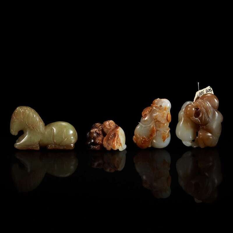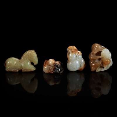A group of four Chinese grey and brown jade items 玉雕一组四件