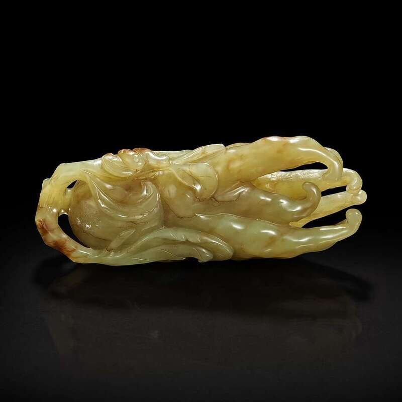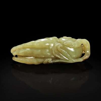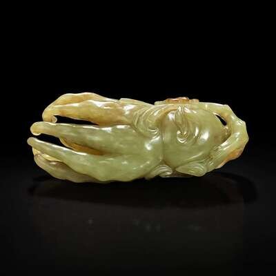 A Chinese celadon jade "Buddha's hand" citron pendant 青玉佛手