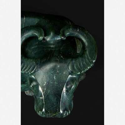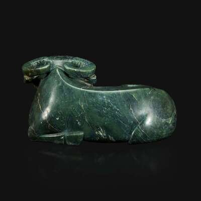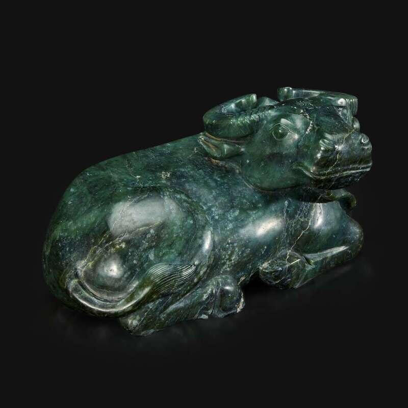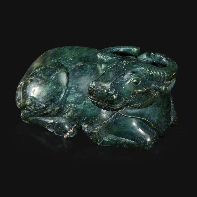 A large Chinese spinach jade recumbent water buffalo 菠菜绿玉水牛