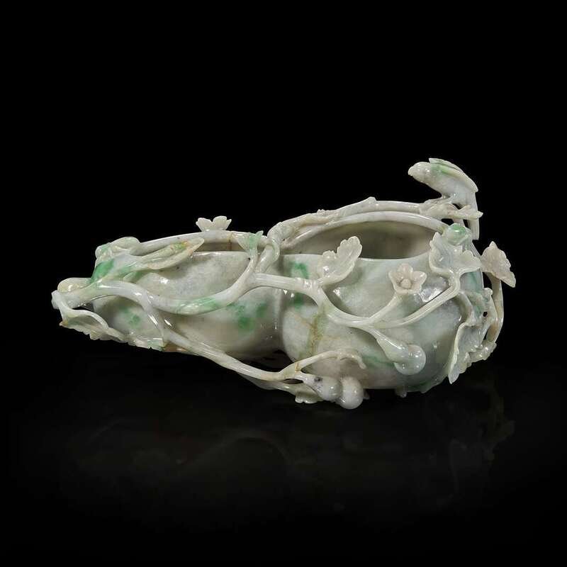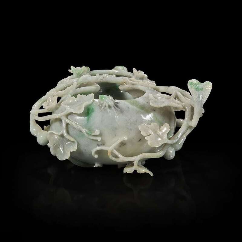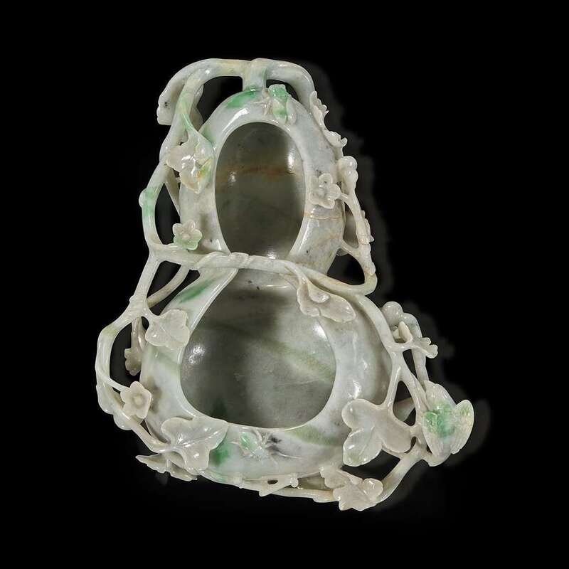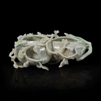 A Chinese carved jadeite double gourd brushwasher 翡翠葫芦笔洗