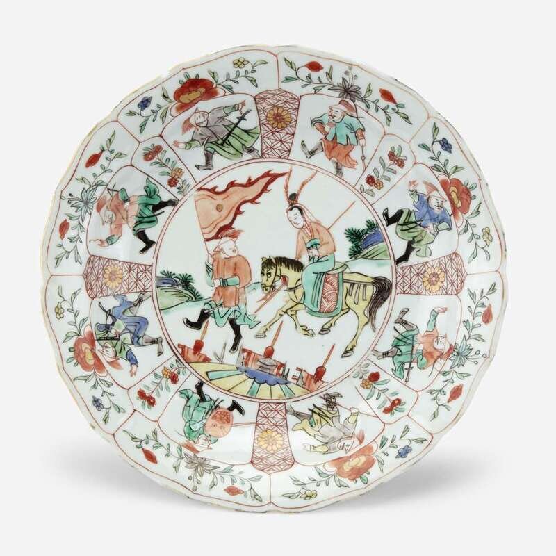 A Chinese famille verte "Mu Guyiying" dish 五彩“穆桂英”瓷盘 circa ? 1700-1725