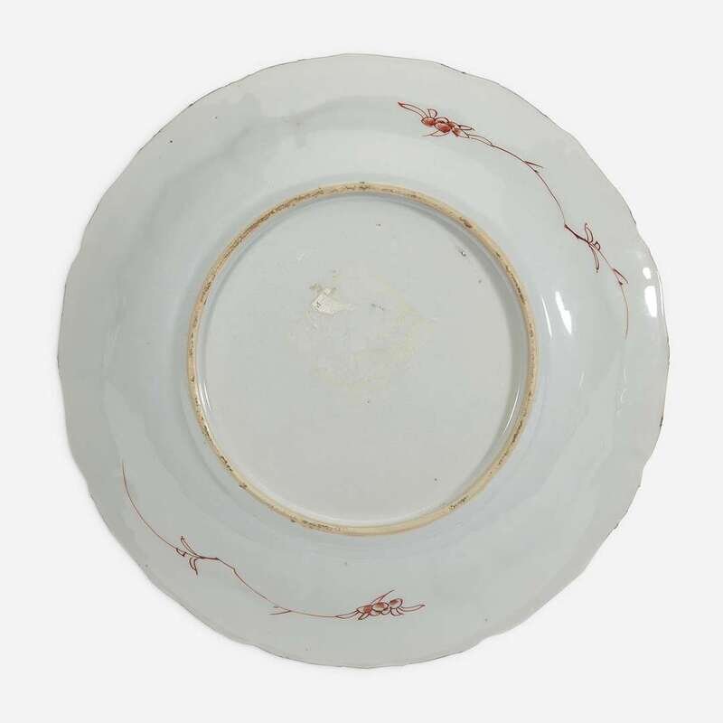 The cavetto painted with figural reserves below floral sprays. NOTE: A very similar dish was previously offered by Galerie Nicolas Fournery, Paris. Six dishes with this design are also in the collection of the Groninger Museum in the Netherlands (inv. no. 1945-159), and another dish is in the collection of the Rijksmuseum in Amsterdam.