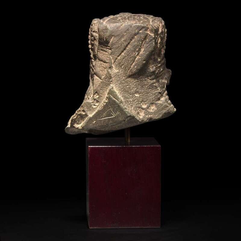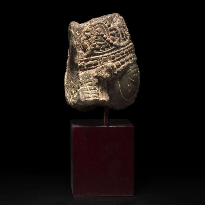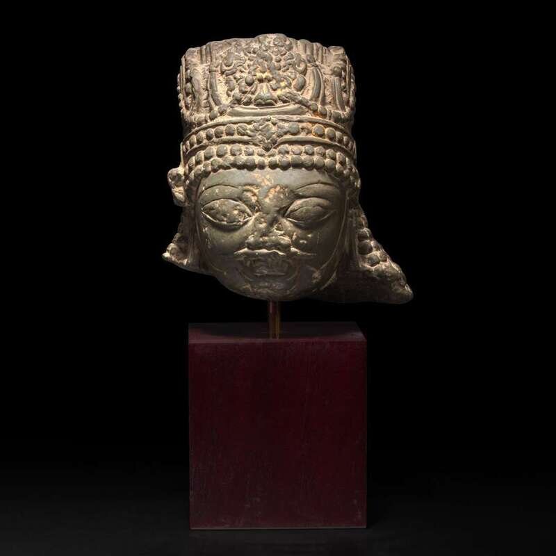 A Kashmiri carved stone head of a crowned figure 印度石雕带冠头像 8th-10th century ?????