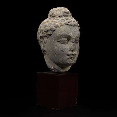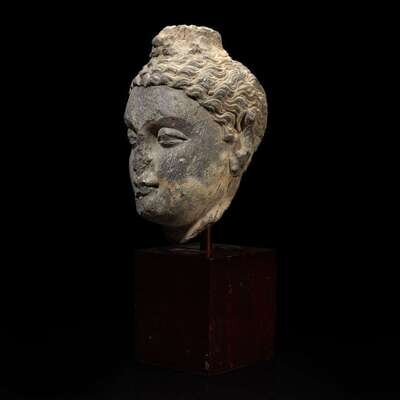A carved schist head of a Buddha, Gandhara 健陀罗片岩佛首 3rd - 5th Century or earlier ????????