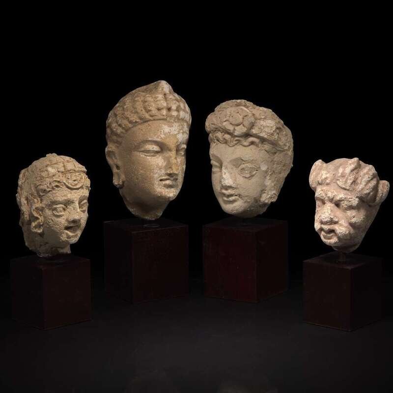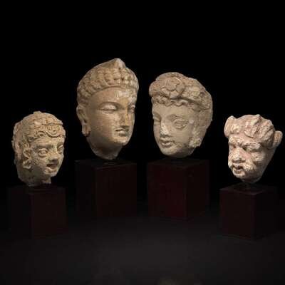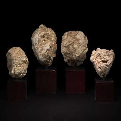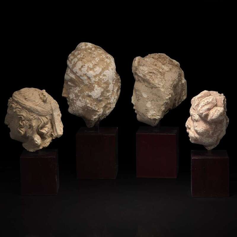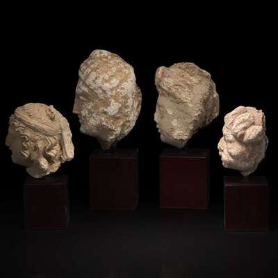 A group of four small stucco heads 石灰岩佛首一组四件 Gandhara, 4rd-5th Century ??? ?????